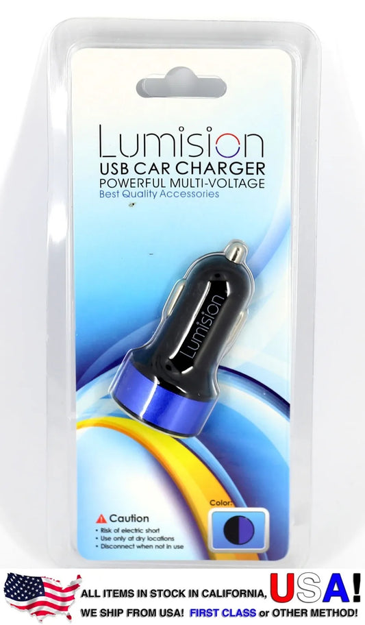 Black/Blue USB Car Charger Dual 2 Port for iPhone Samsung HTC 3.1a 2.1a travel